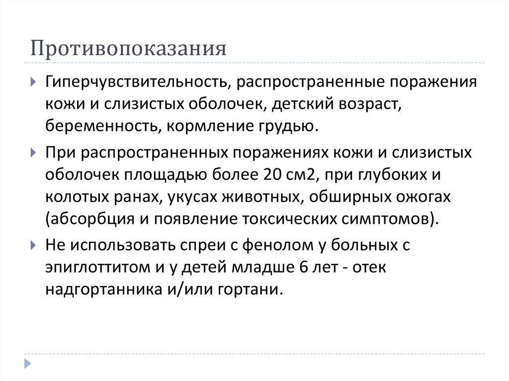 Не использовать спреи с фенолом у больных с