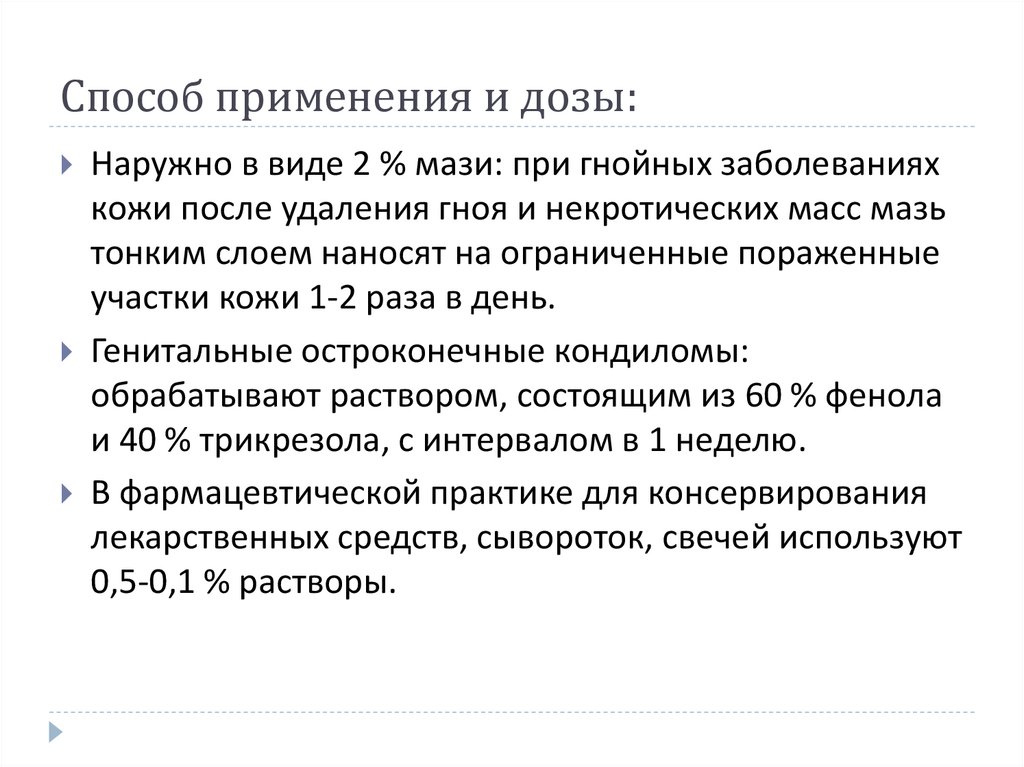 (в составе комплексной терапии): 5 % раствор фенола