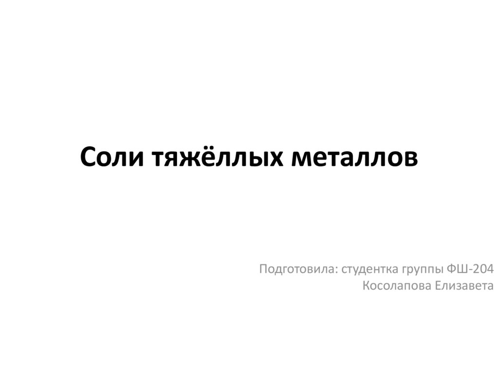 Соли тяжёллых металловПодготовила: студентка группы ФШ-204