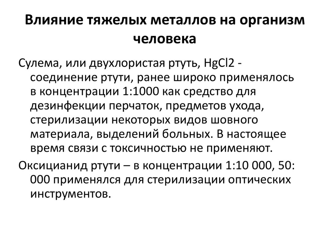 Сулема, или двухлористая ртуть, HgCl2 соединение ртути, ранее широко применялось