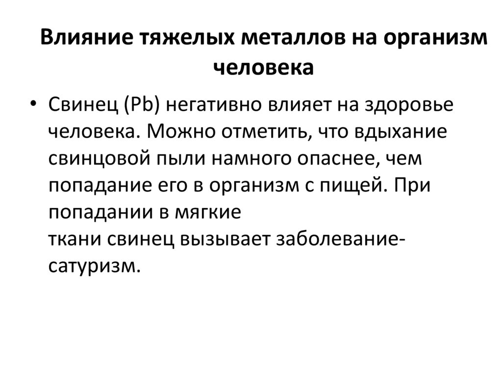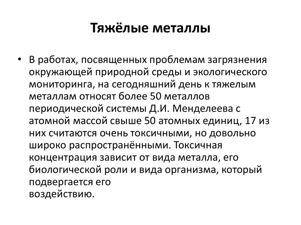 Тяжёлые металлы• В работах, посвященных проблемам загрязнения