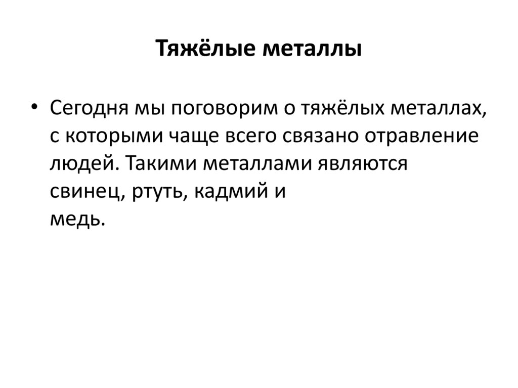 Тяжёлые металлы• Сегодня мы поговорим о тяжёлых металлах,