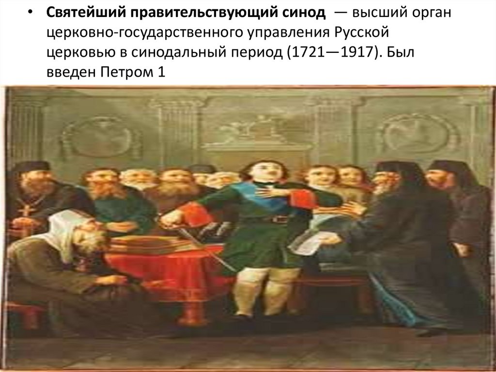 • Святейший правительствующий синод — высший органцерковно-государственного управления Русской