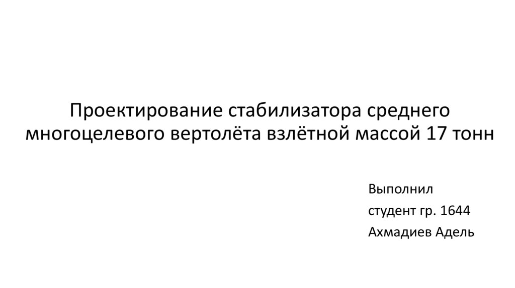 Проектирование стабилизатора среднего многоцелевого вертолёта взлётной массой 17 тонн