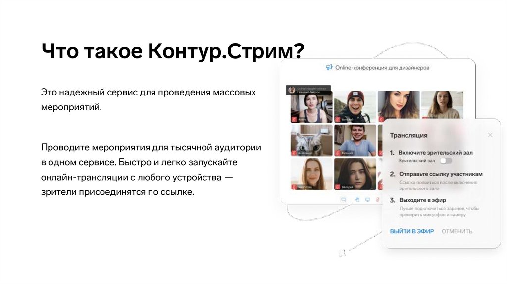 Что такое Контур.Стрим?Это надежный сервис для проведения массовых
