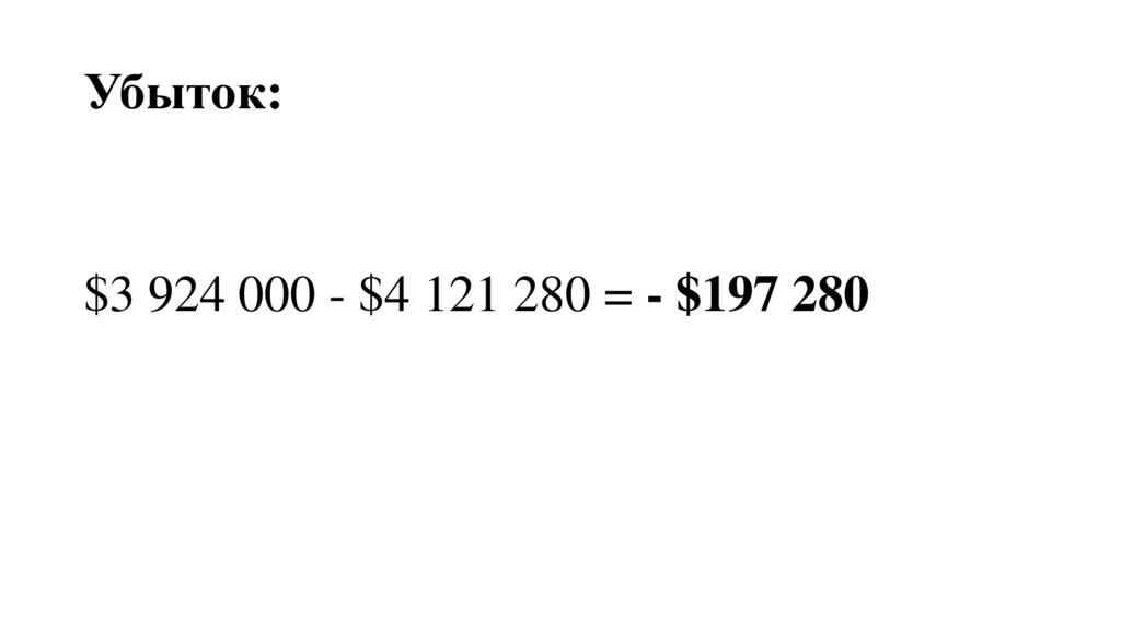Убыток:$3 924 000 - $4 121 280 = - $197 280