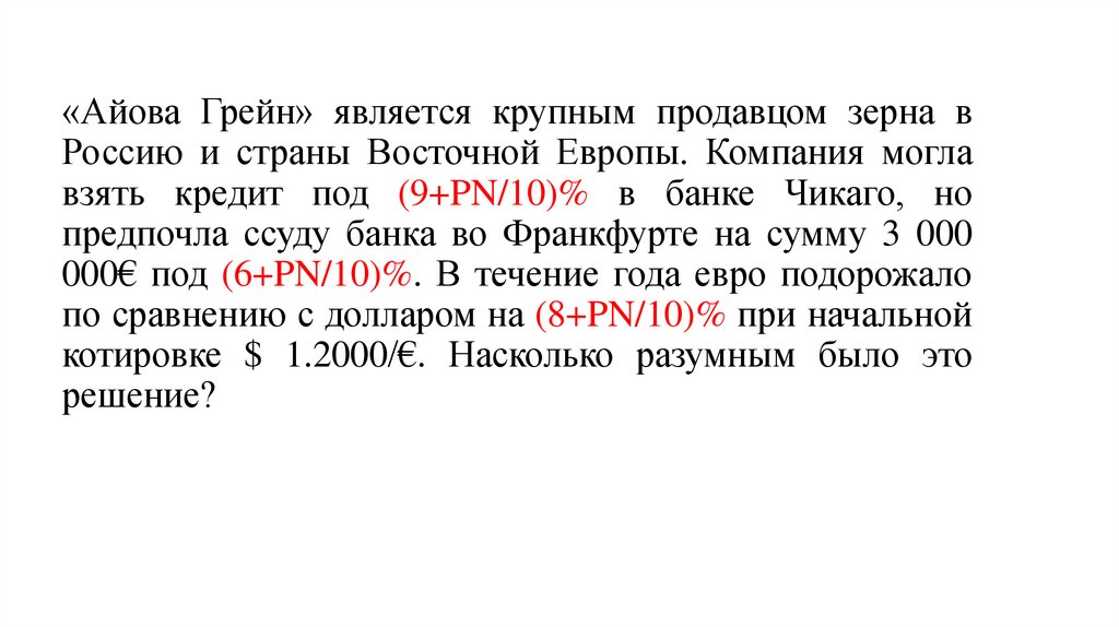 взять кредит под (9+PN/10)% в банке Чикаго, но