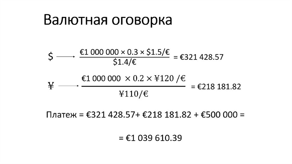 Валютная оговоркаСумма – €1 000 000