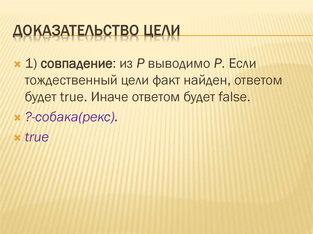 ДОКАЗАТЕЛЬСТВО ЦЕЛИ1) совпадение: из Р выводимо Р. Если