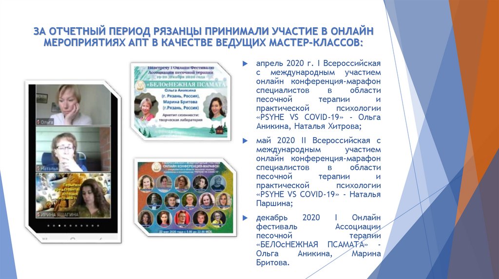 ЗА ОТЧЕТНЫЙ ПЕРИОД РЯЗАНЦЫ ПРИНИМАЛИ УЧАСТИЕ В ОНЛАЙНМЕРОПРИЯТИЯХ АПТ В КАЧЕСТВЕ ВЕДУЩИХ МАСТЕР-КЛАССОВ: