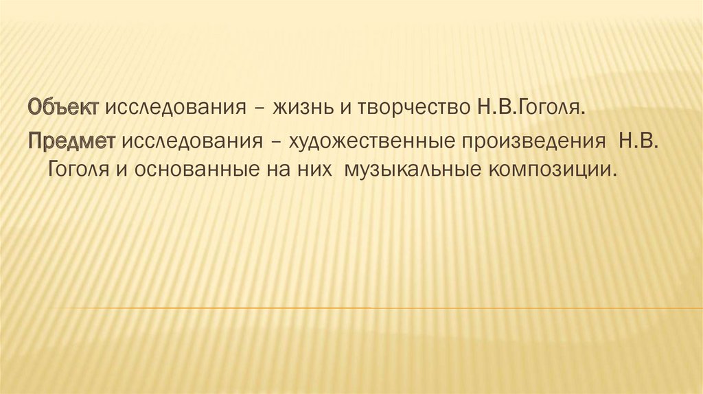 Объект исследования – жизнь и творчество Н.В.Гоголя.Предмет исследования – художественные произведения Н.В.