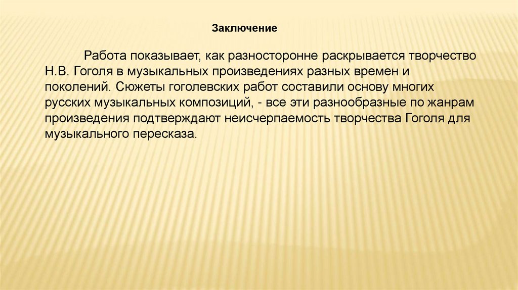– показать, какое значение оказало творчество Н.В. Гоголя намузыкальную культуру отечественного искусства.