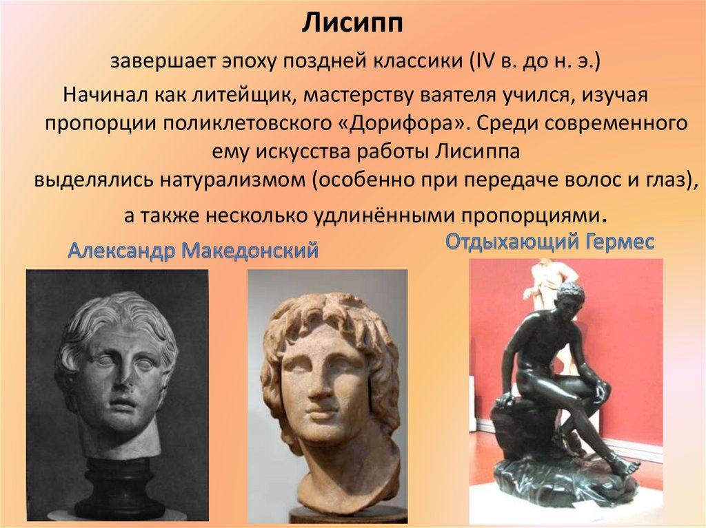 Лисиппзавершает эпоху поздней классики (IV в. до н. э.)