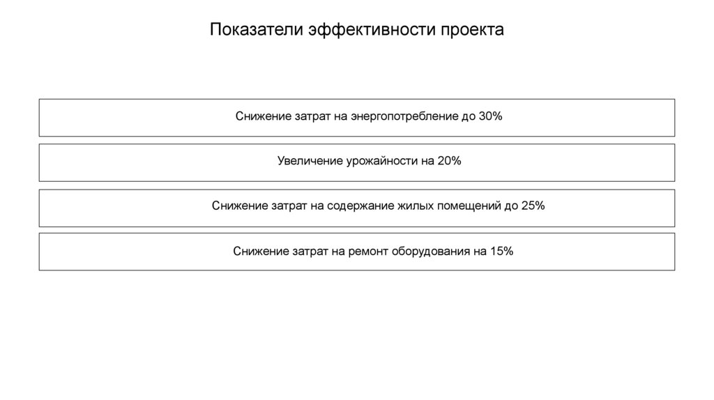 Показатели эффективности проектаСнижение затрат на энергопотребление до 30%