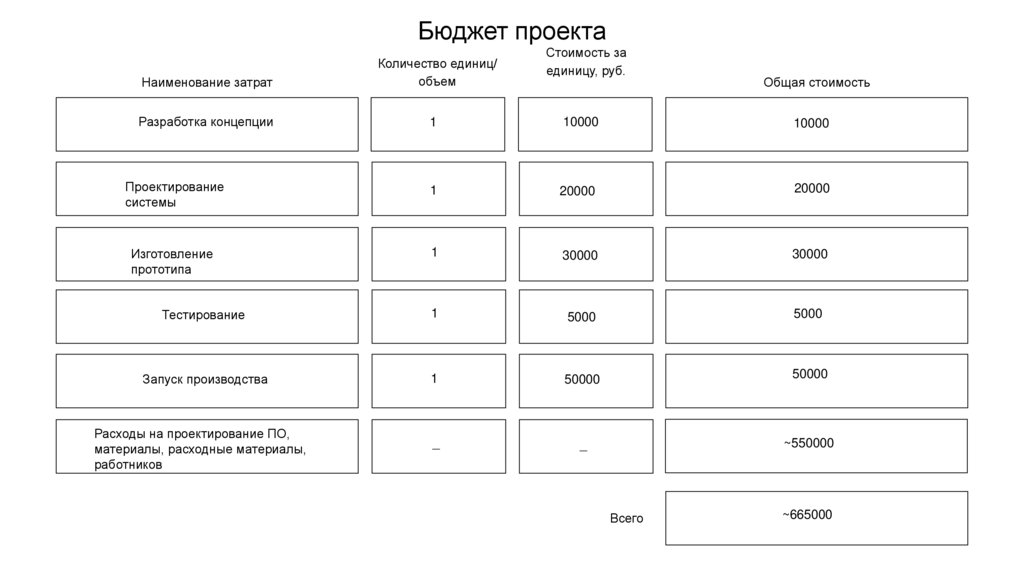 Бюджет проектаСтоимость за