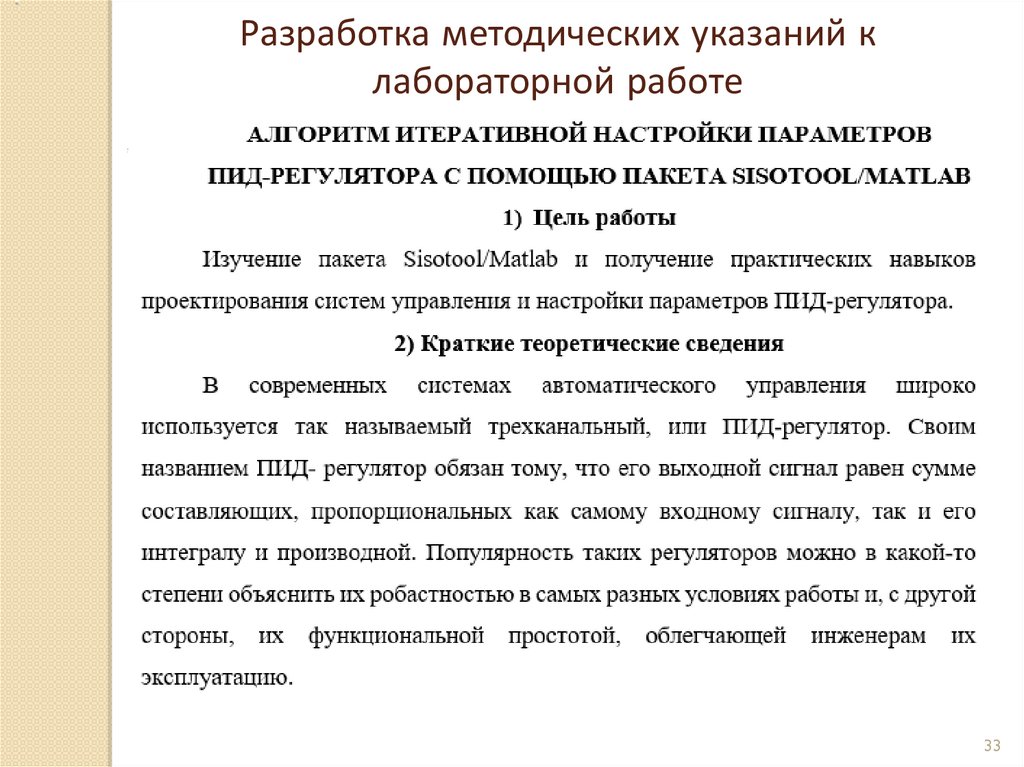 Лабораторная работа «Алгоритм итеративной настройки параметров ПИД-регулятора с помощью пакета Sisotool/Matlab»