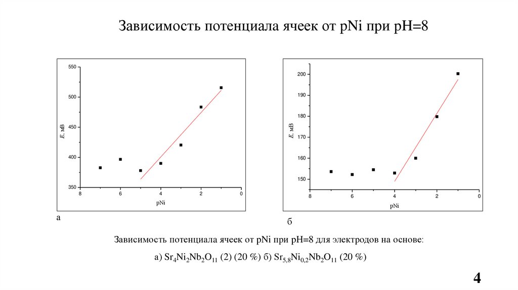 Зависимость потенциалa ячеек от pNi при pH=80,2