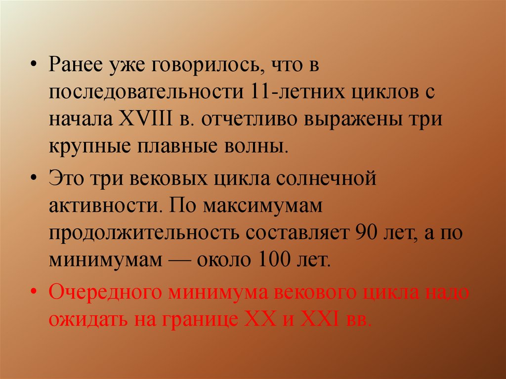 • Ранее уже говорилось, что впоследовательности 11-летних циклов с