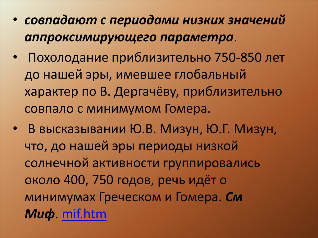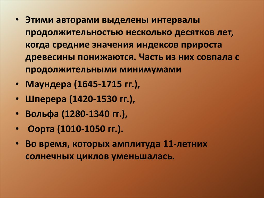 • Этими авторами выделены интервалыпродолжительностью несколько десятков лет,