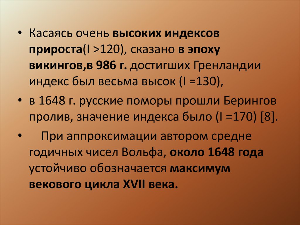 • Касаясь очень высоких индексовприроста(I >120), сказано в эпоху