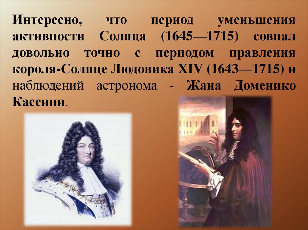 2. Минимум Маундера — период долговременного уменьшения количества солнечных пятен примерно с 1645 по 1715 годы. Получил название