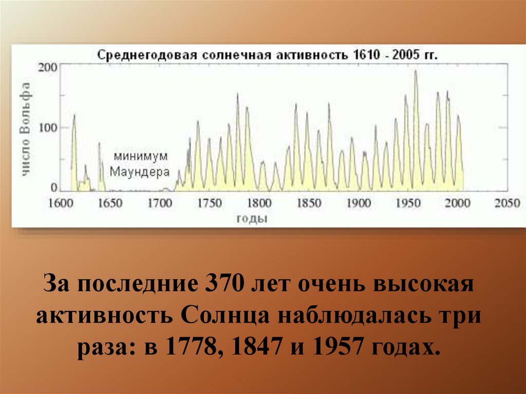 За последние 370 лет очень высокаяактивность Солнца наблюдалась три