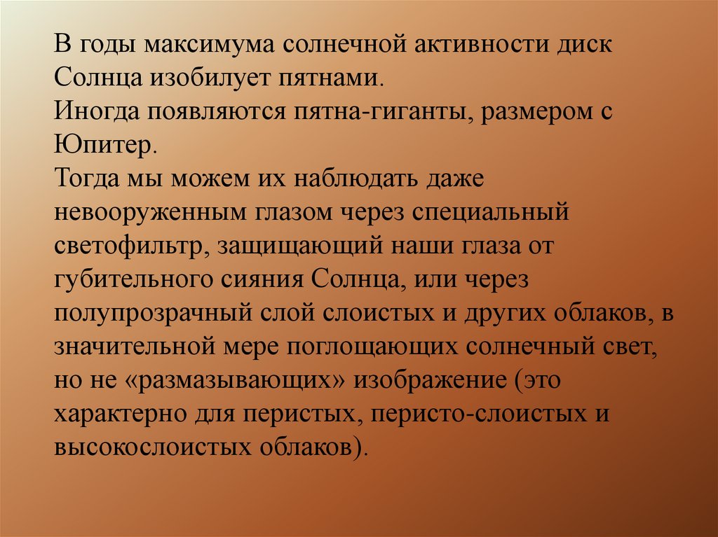 В годы максимума солнечной активности дискСолнца изобилует пятнами.