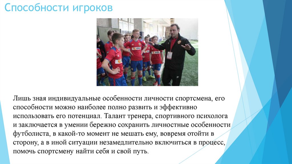 Способности игроковЛишь зная индивидуальные особенности личности спортсмена, его