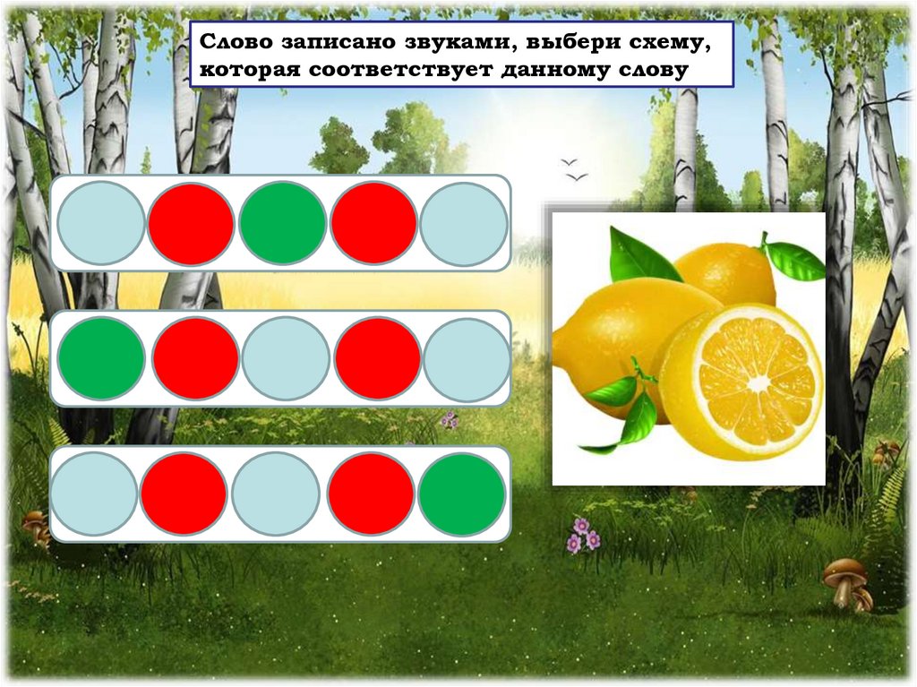 Слово записано звуками, выбери схему,которая соответствует данному слову