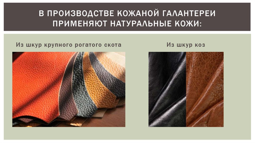 В ПРОИЗВОДСТВЕ КОЖАНОЙ ГА ЛАНТЕРЕИПРИМЕНЯЮТ НАТ УРАЛЬНЫЕ КОЖИ: