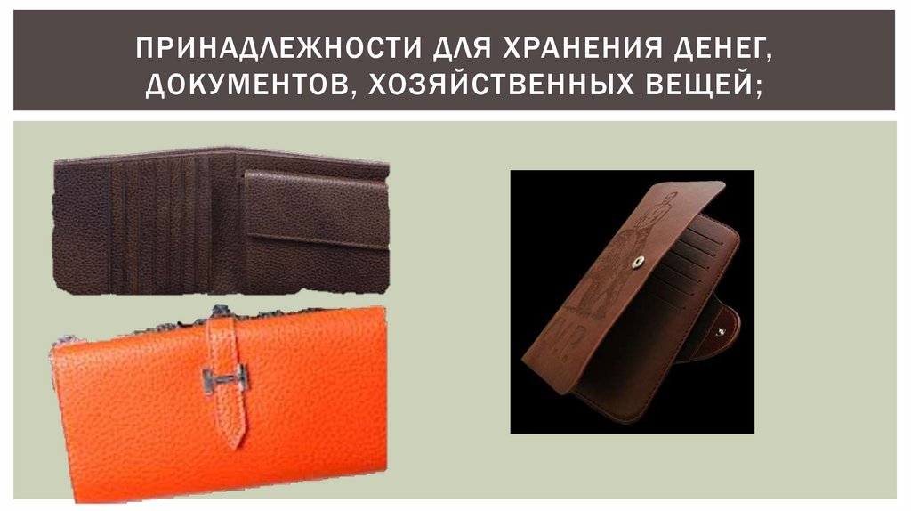 принадлежности для хранения денег, документов,