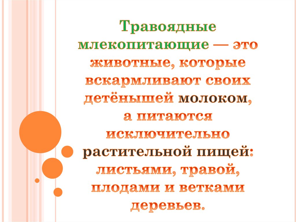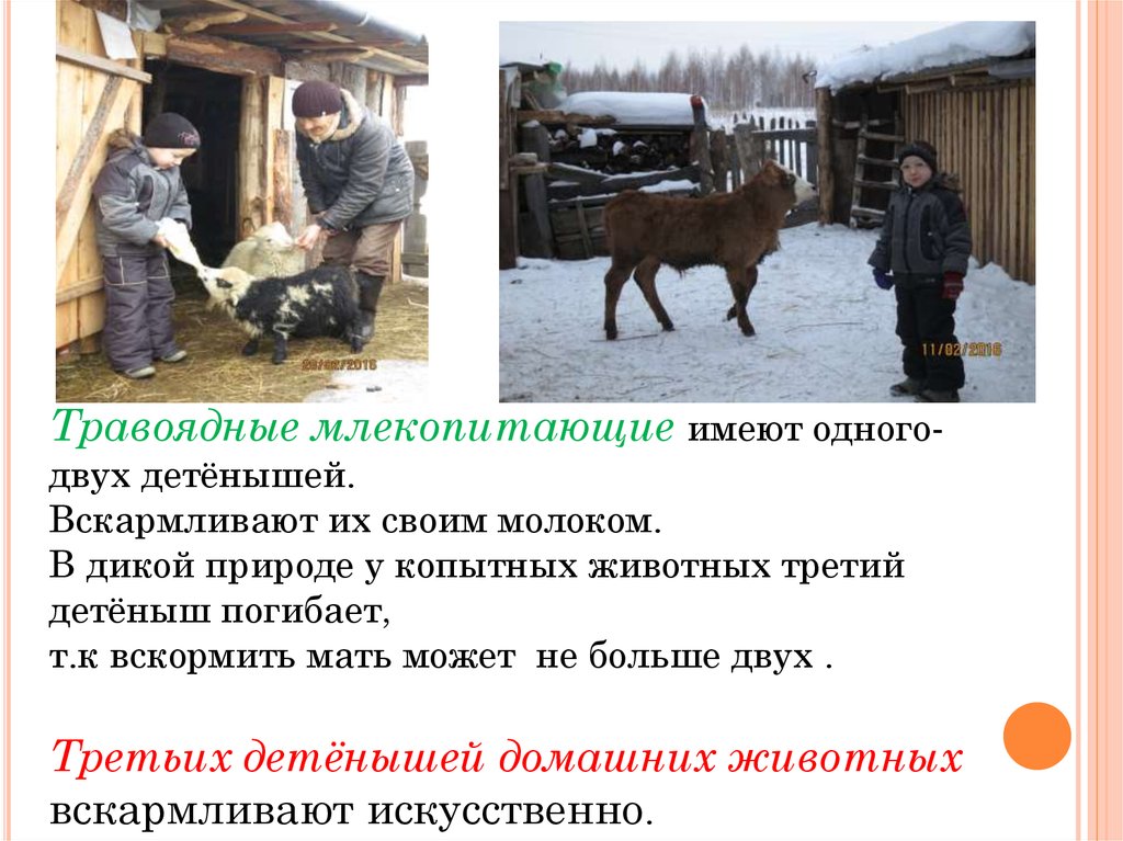 Травоядные млекопитающие имеют одногодвух детёнышей.Вскармливают их своим молоком.