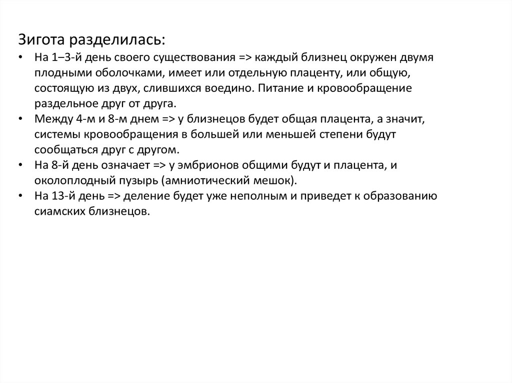 Зигота разделилась:• На 1‒3-й день своего существования => каждый близнец окружен двумя