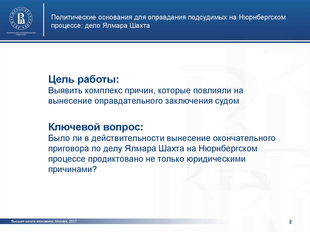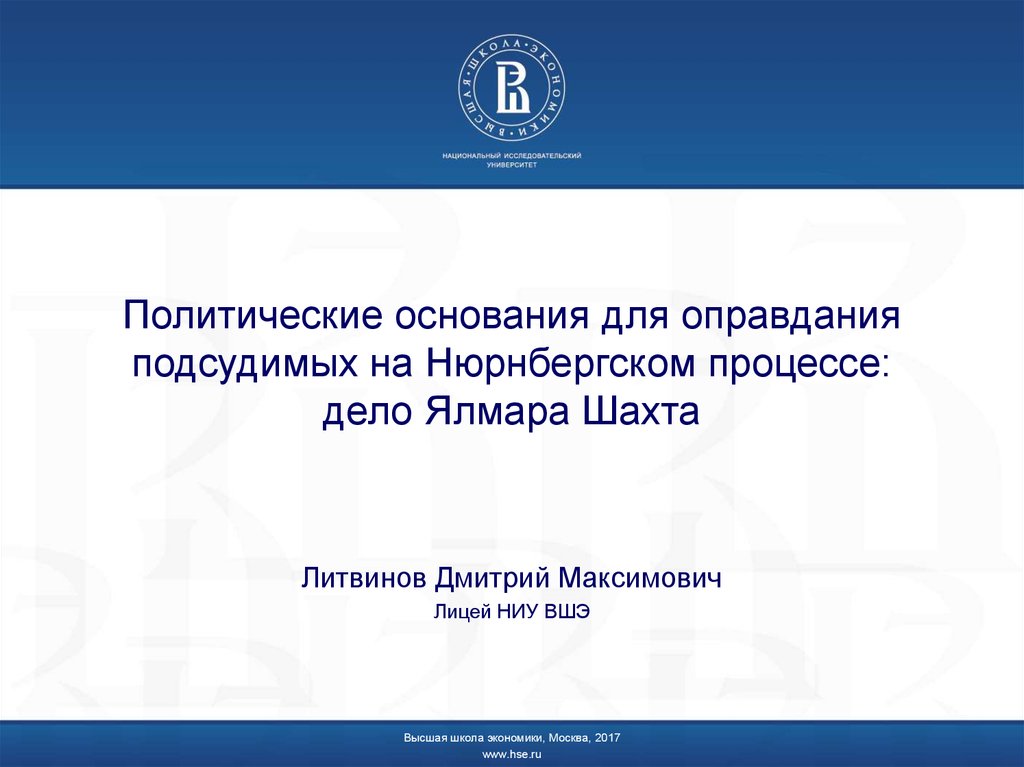 Политические основания для оправдания подсудимых на Нюрнбергскомпроцессе: дело Ялмара Шахта
