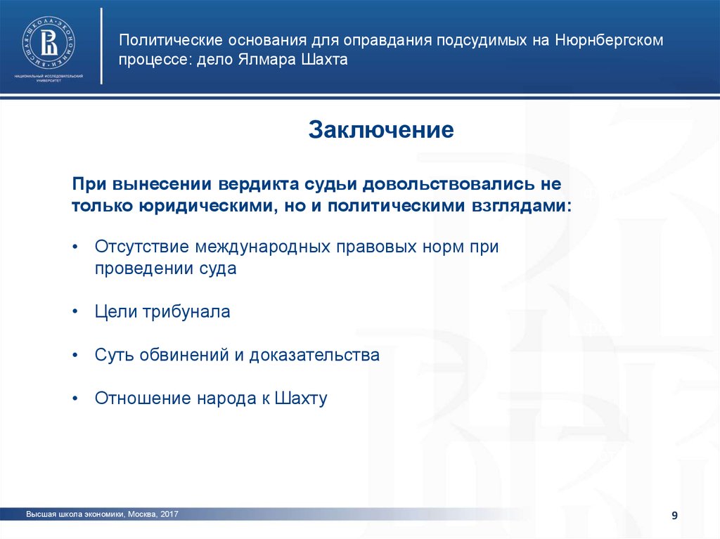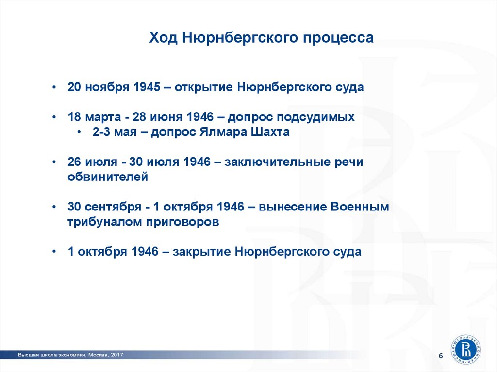 1. Политические основания для оправдания подсудимых на Нюрнбергском процессе: дело Ялмара Шахта