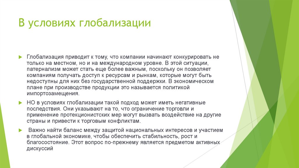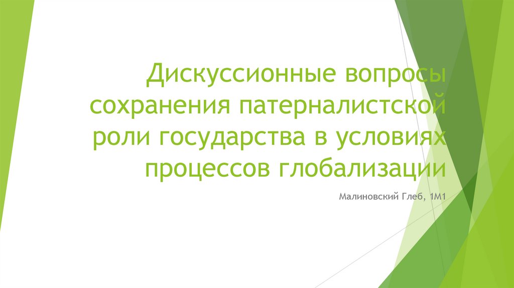 Дискуссионные вопросы сохранения патерналистской роли государства в условиях процессов глобализации