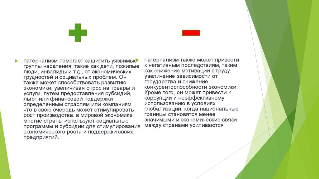 патернализм помогает защитить уязвимые патернализм также может привестигруппы населения, такие как дети, пожилые к негативным последствиям, таким