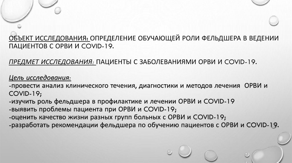 ОБЪЕКТ ИССЛЕДОВАНИЯ: ОПРЕДЕЛЕНИЕ ОБУЧАЮЩЕЙ РОЛИ ФЕЛЬДШЕРА В ВЕДЕНИИПАЦИЕНТОВ С ОРВИ И COVID-19.