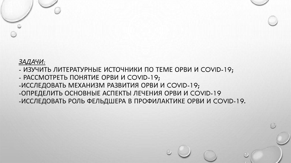 ЗАДАЧИ:- ИЗУЧИТЬ ЛИТЕРАТУРНЫЕ ИСТОЧНИКИ ПО ТЕМЕ ОРВИ И COVID-19;