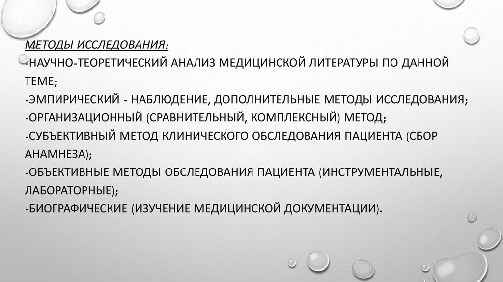 МЕТОДЫ ИССЛЕДОВАНИЯ:-НАУЧНО-ТЕОРЕТИЧЕСКИЙ АНАЛИЗ МЕДИЦИНСКОЙ ЛИТЕРАТУРЫ ПО ДАННОЙ