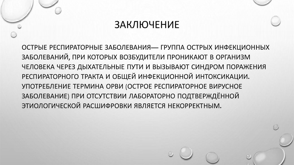 ЗАКЛЮЧЕНИЕОСТРЫЕ РЕСПИРАТОРНЫЕ ЗАБОЛЕВАНИЯ— ГРУППА ОСТРЫХ ИНФЕКЦИОННЫХ