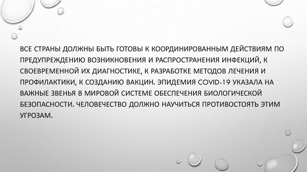 ВСЕ СТРАНЫ ДОЛЖНЫ БЫТЬ ГОТОВЫ К КООРДИНИРОВАННЫМ ДЕЙСТВИЯМ ПОПРЕДУПРЕЖДЕНИЮ ВОЗНИКНОВЕНИЯ И РАСПРОСТРАНЕНИЯ ИНФЕКЦИЙ, К