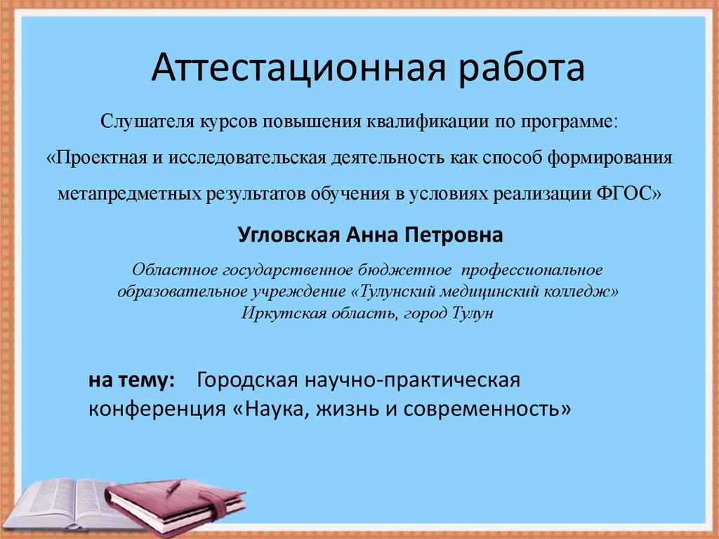 Аттестационная работа. Городская научно-практическая конференция «Наука, жизнь и современность»