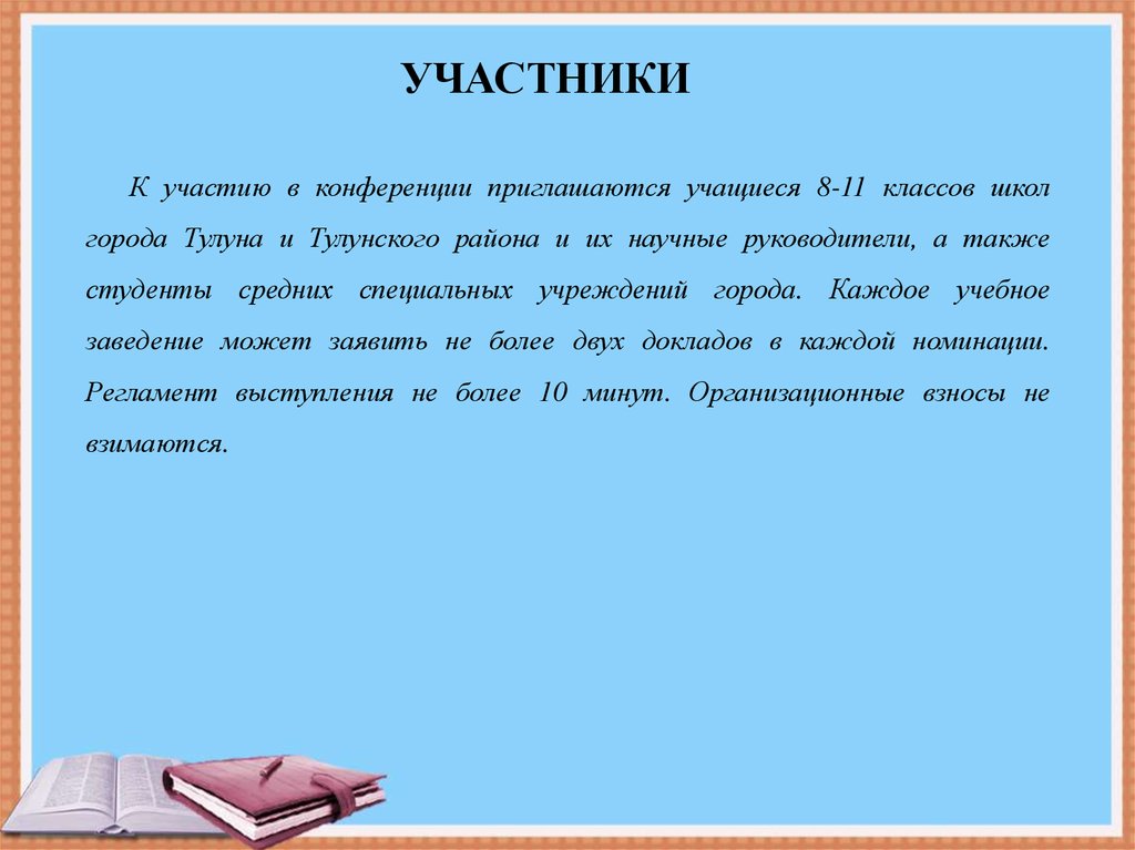 УЧАСТНИКИК участию в конференции приглашаются учащиеся 8-11 классов школ