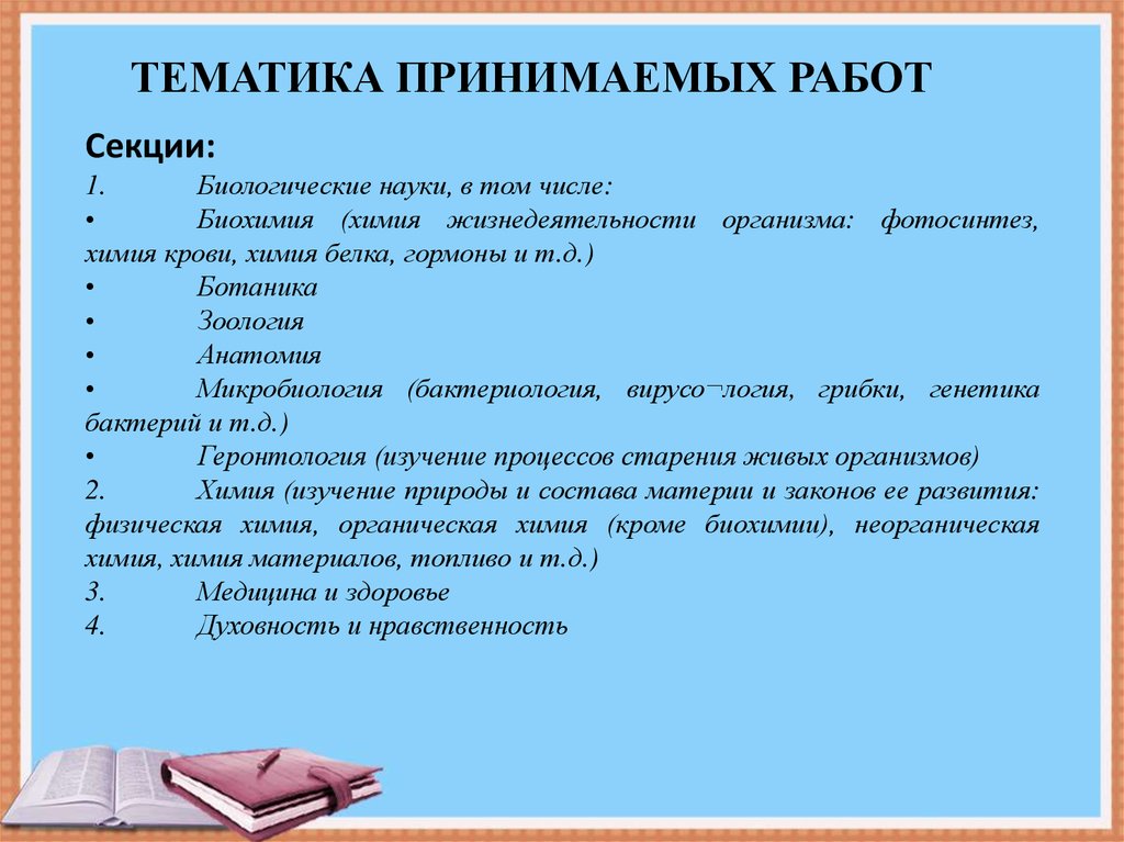 ТЕМАТИКА ПРИНИМАЕМЫХ РАБОТСекции: