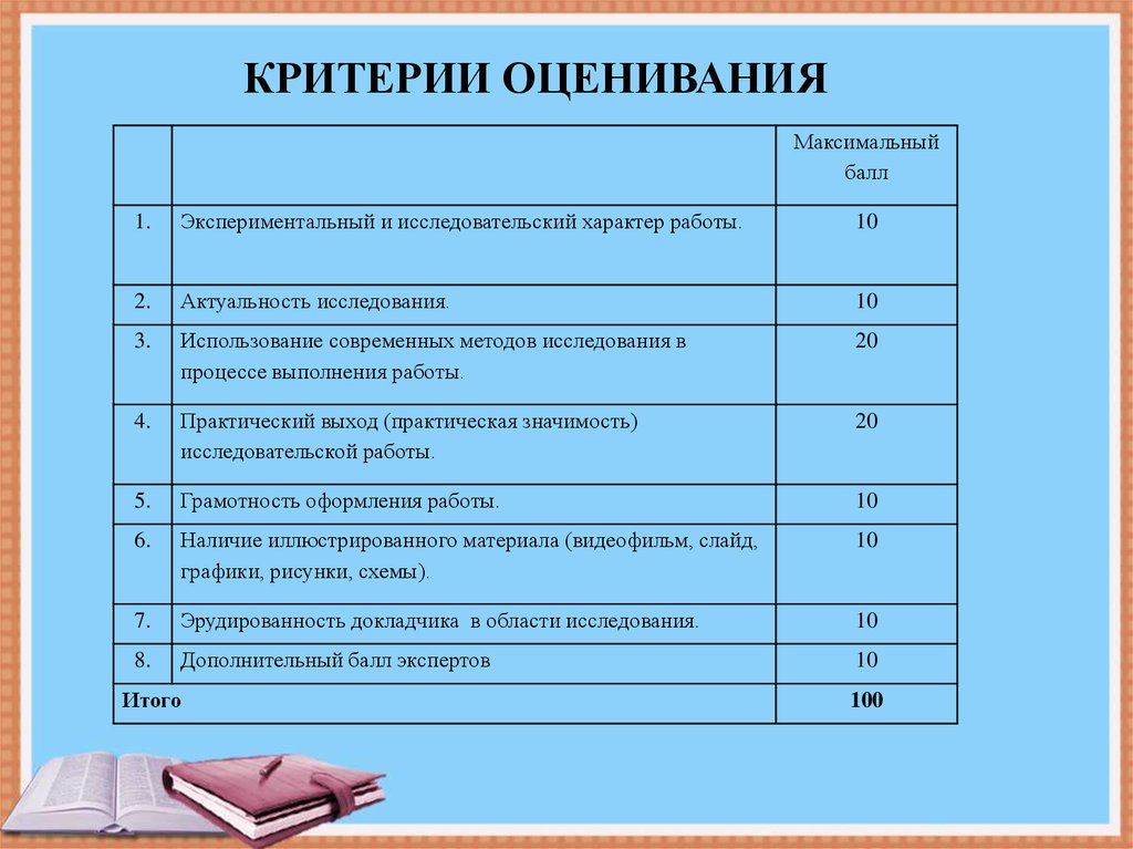 КРИТЕРИИ ОЦЕНИВАНИЯМаксимальный