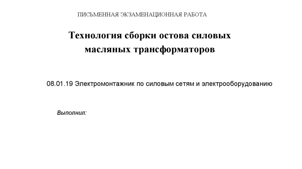 ПИСЬМЕННАЯ ЭКЗАМЕНАЦИОННАЯ РАБОТАТехнология сборки остова силовых