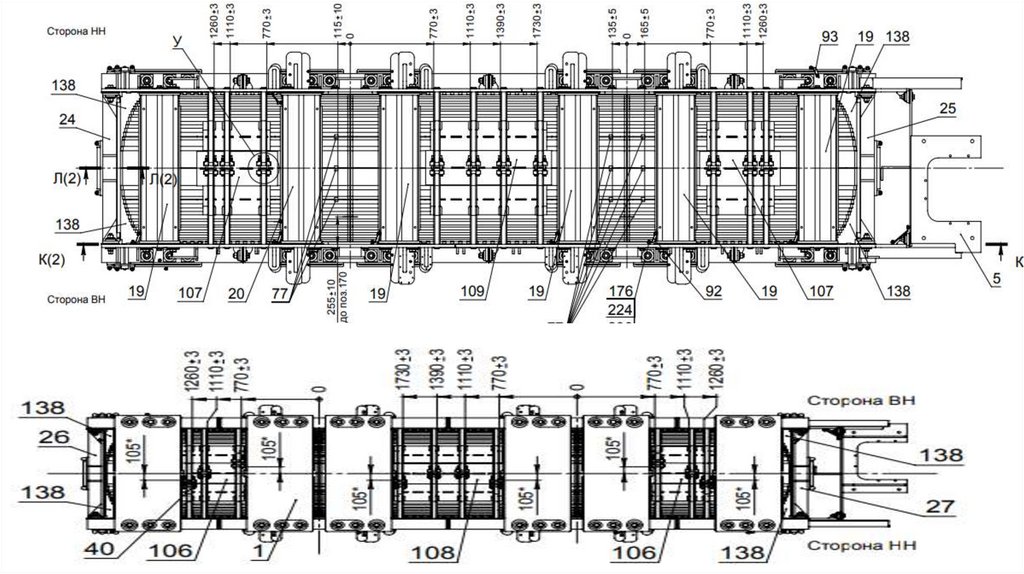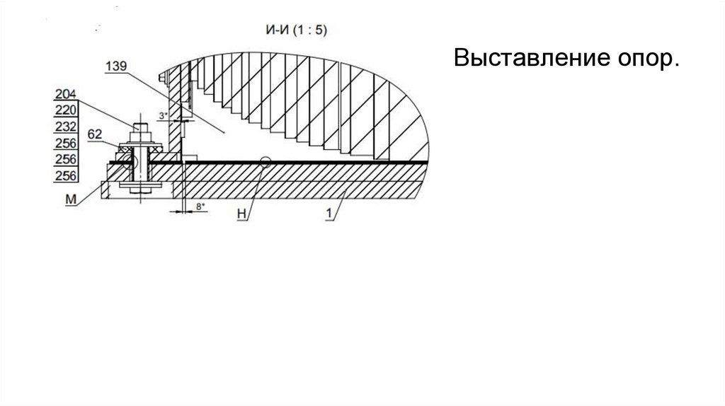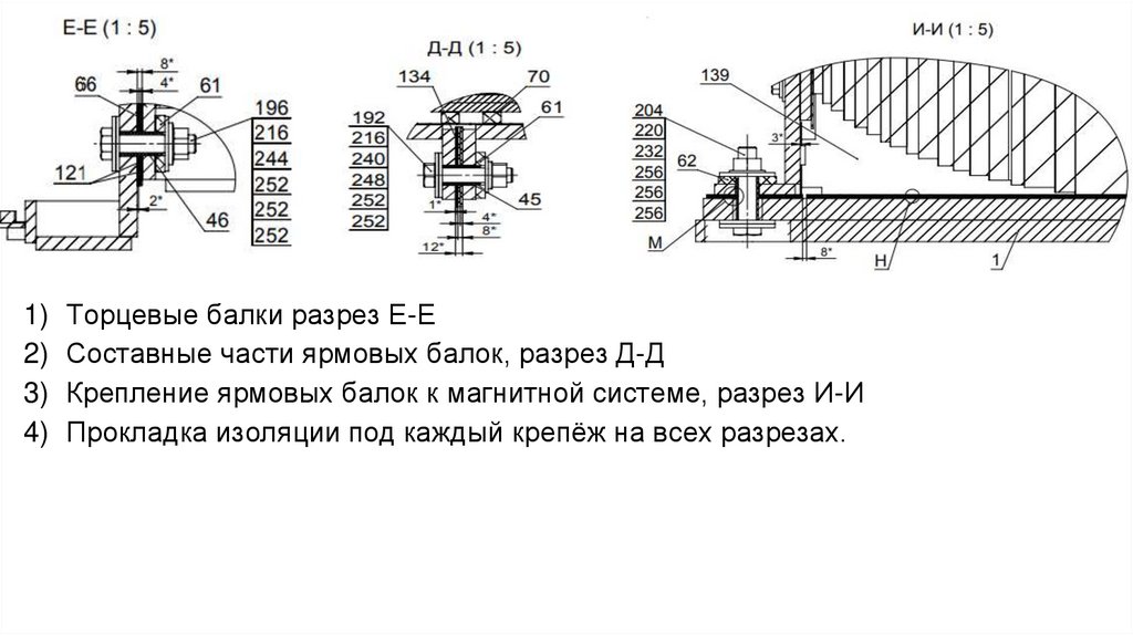 3) Крепление ярмовых балок к магнитной системе, разрез И-И