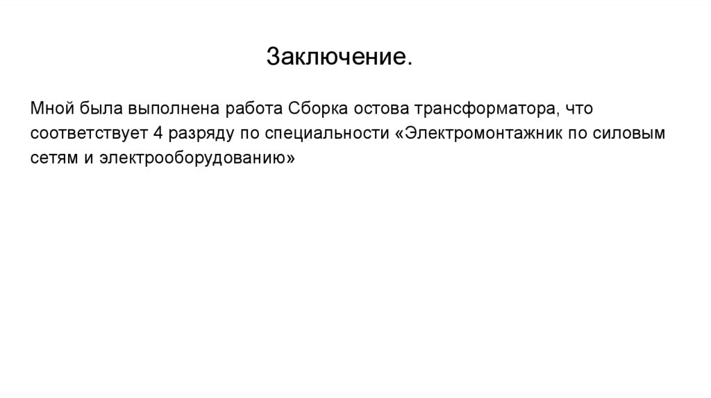 Заключение.Мной была выполнена работа Сборка остова трансформатора, что