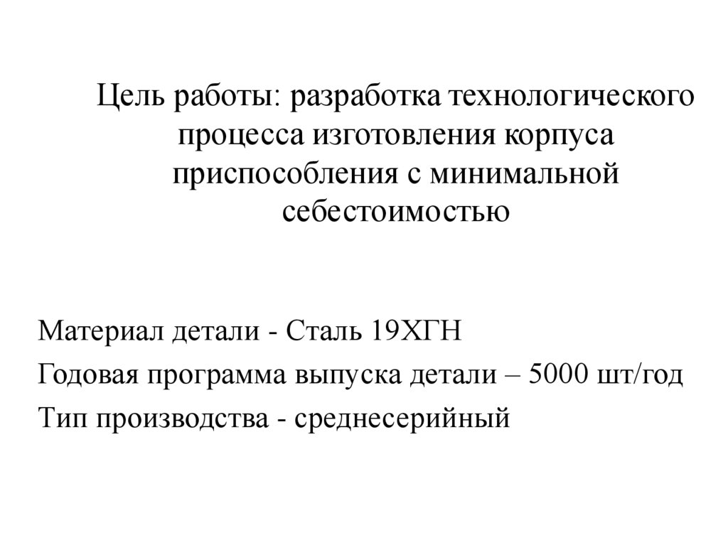 Цель работы: разработка технологическогопроцесса изготовления корпуса
